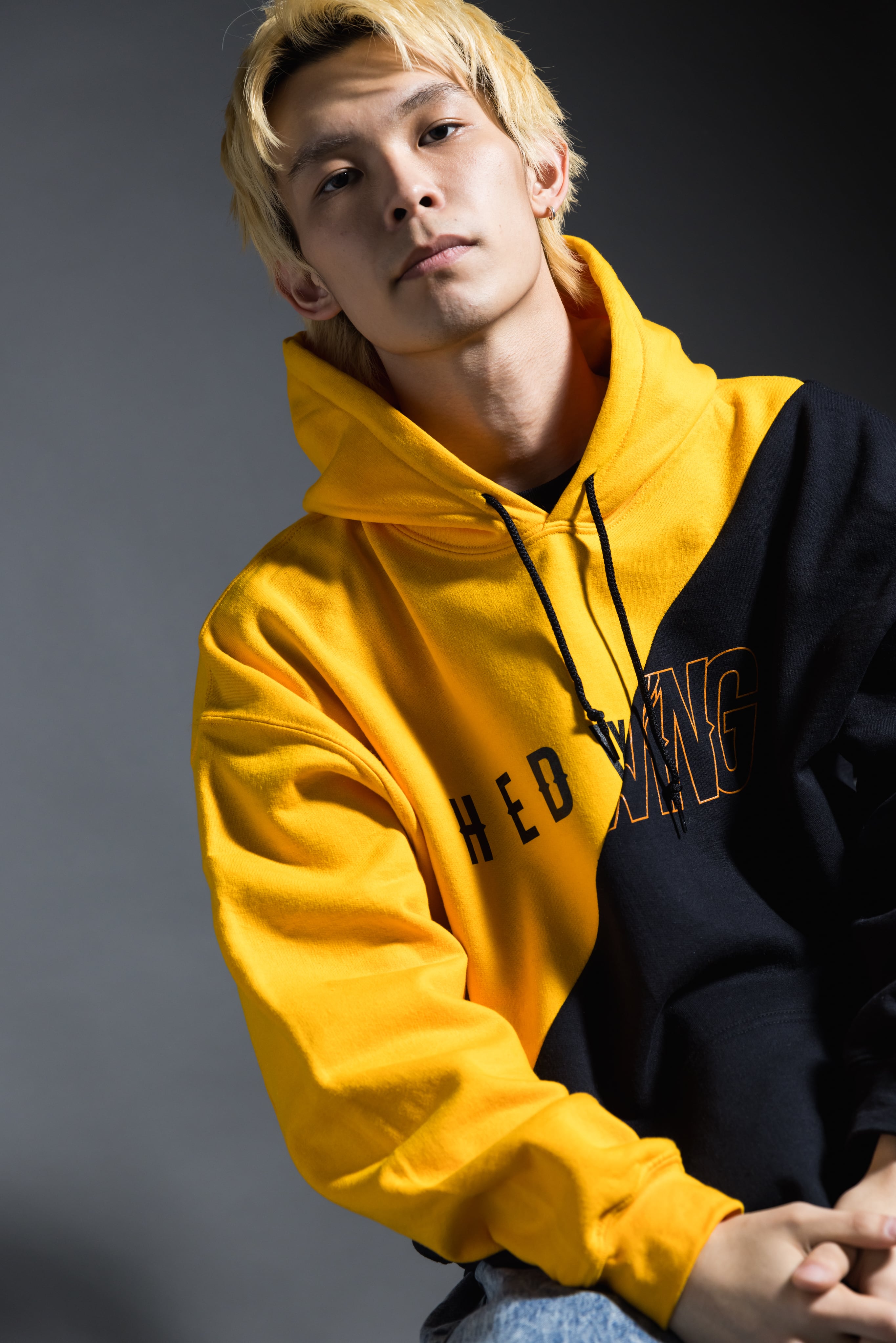 復刻 : Cross cut Hoodie (Orange/Black) type-B