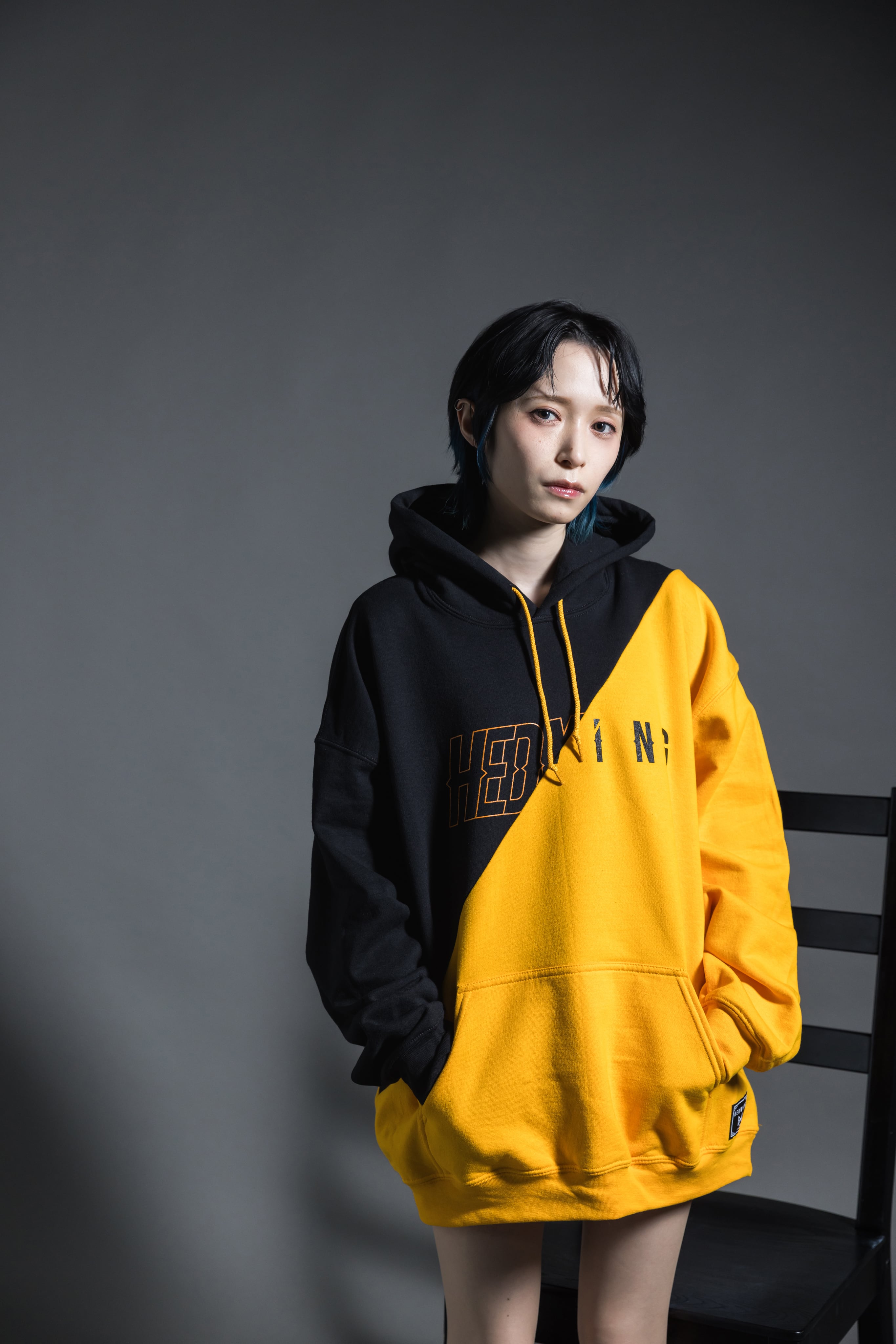 復刻 : Cross cut Hoodie (Black/Orange) type-A